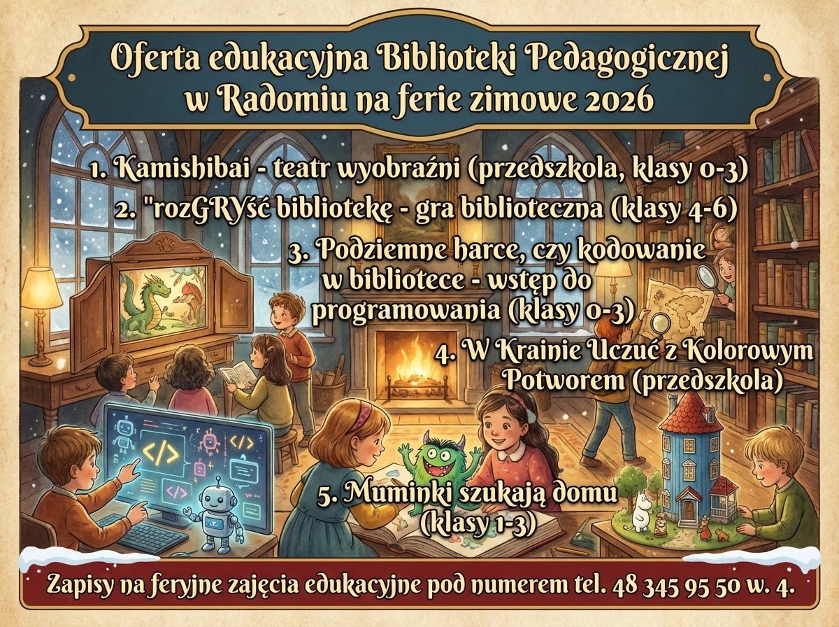 Zapisy na edukacyjne zajęcia feryjne przyjmowane są pod numerem telefonu 345 95 50 w. 4.