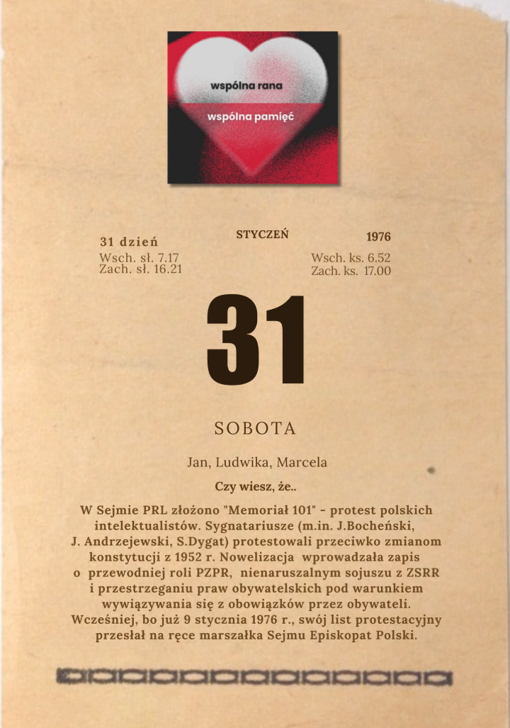 - Kartka z kalendarza – 31 I 1976